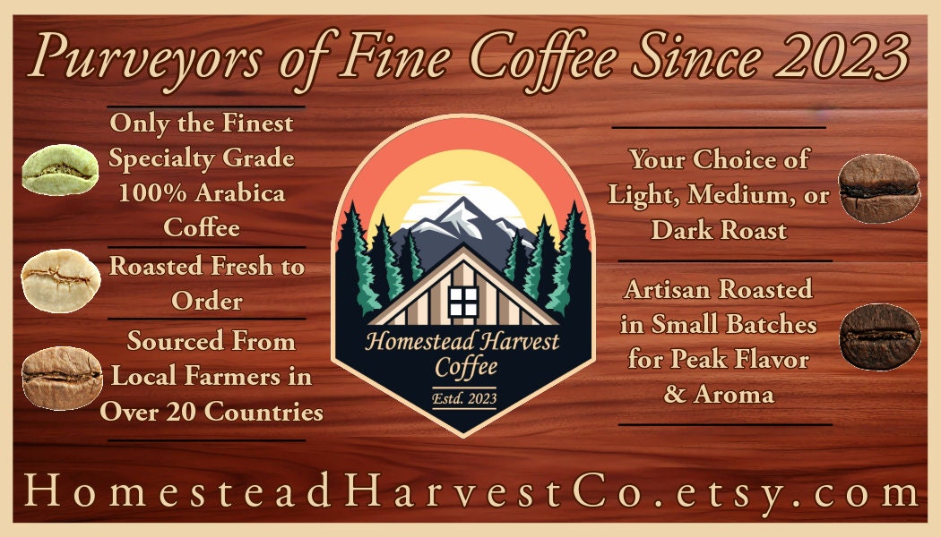 Each 12 Oz bag comes with a rustic burlap bag for storage. Sourced from local farmers, and roasted to order in the United States, our coffee sets the standard for fresh, aromatic, and flavorful coffee. Treat yourself to some of our fine coffee today!