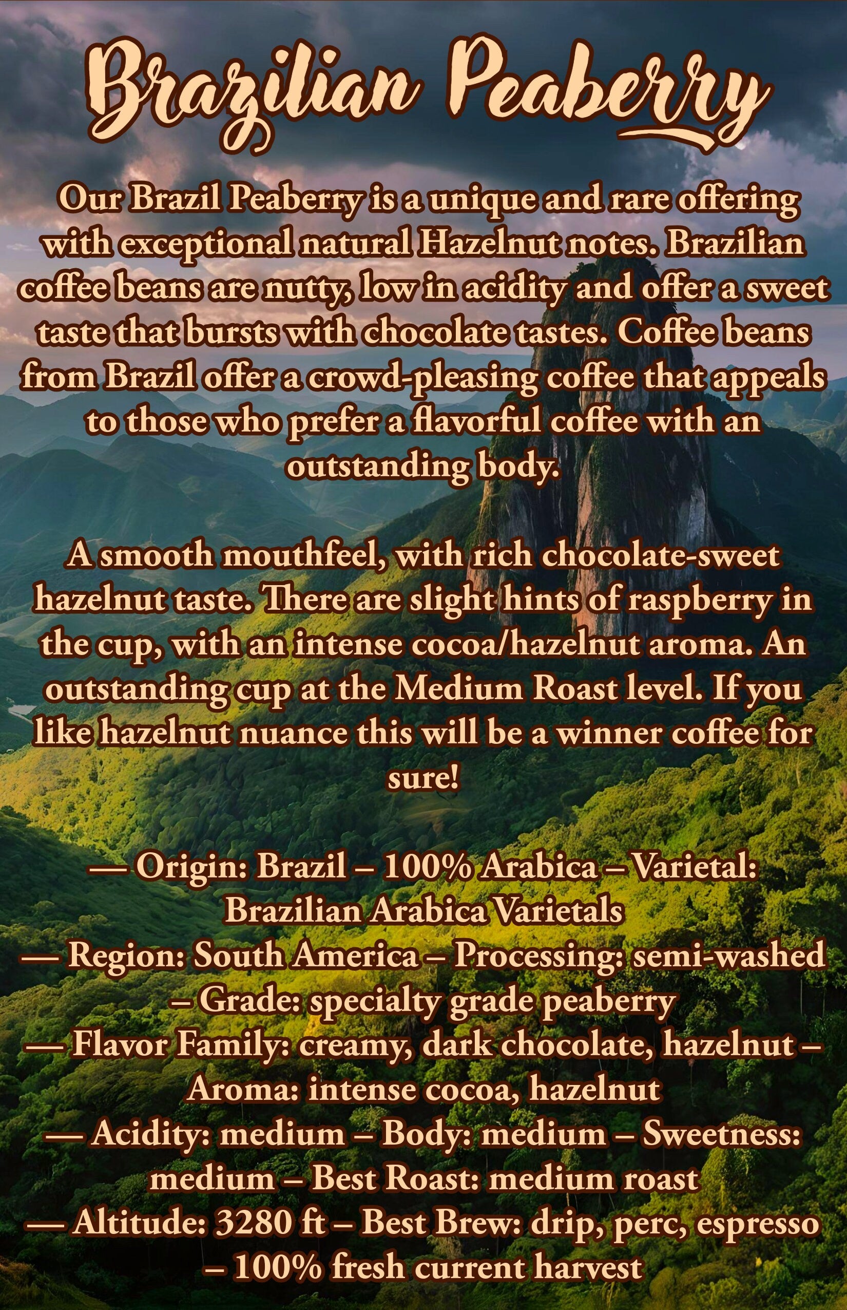 12 Oz Brazilian Peaberry Coffee | 100% Arabica Coffee Beans |