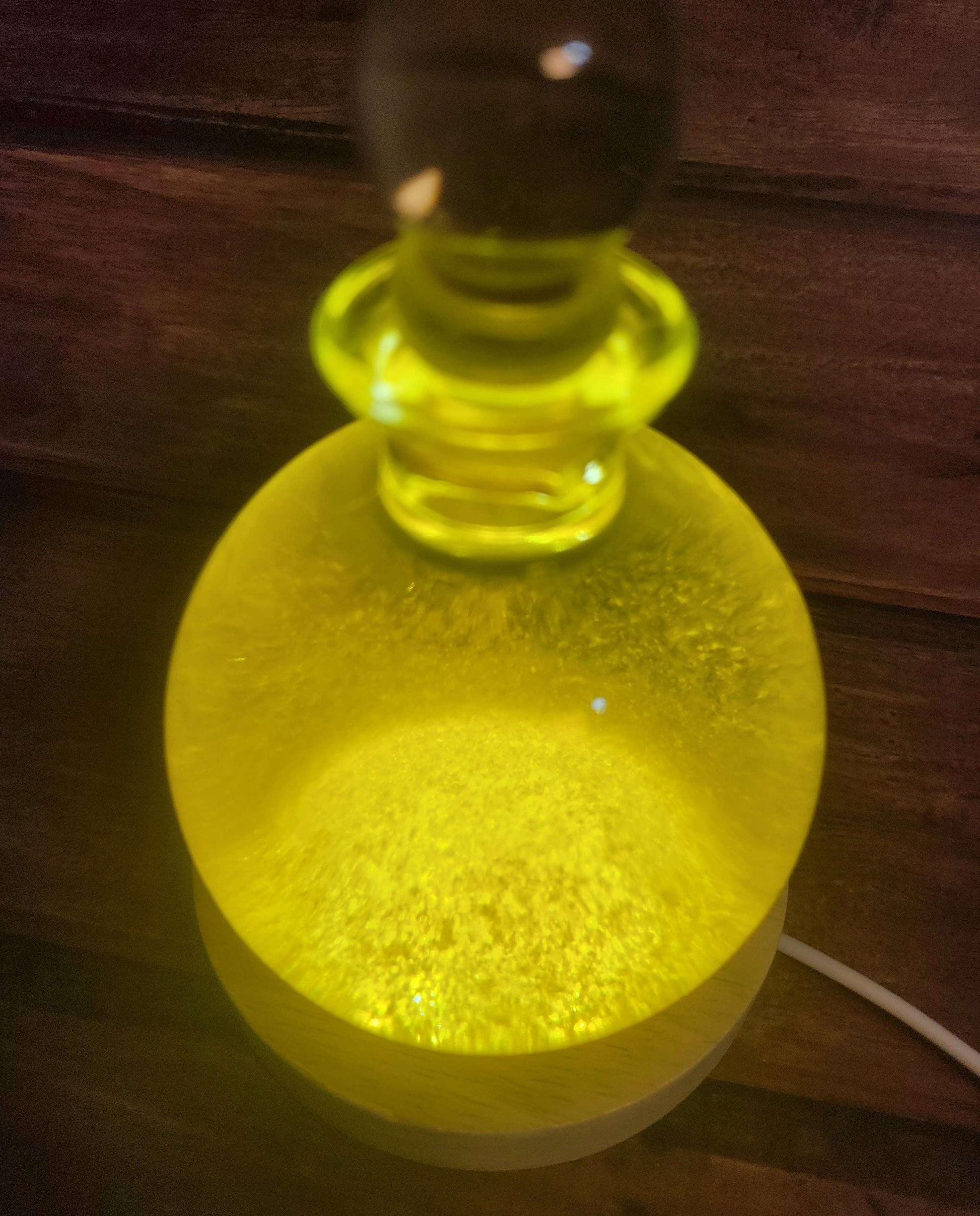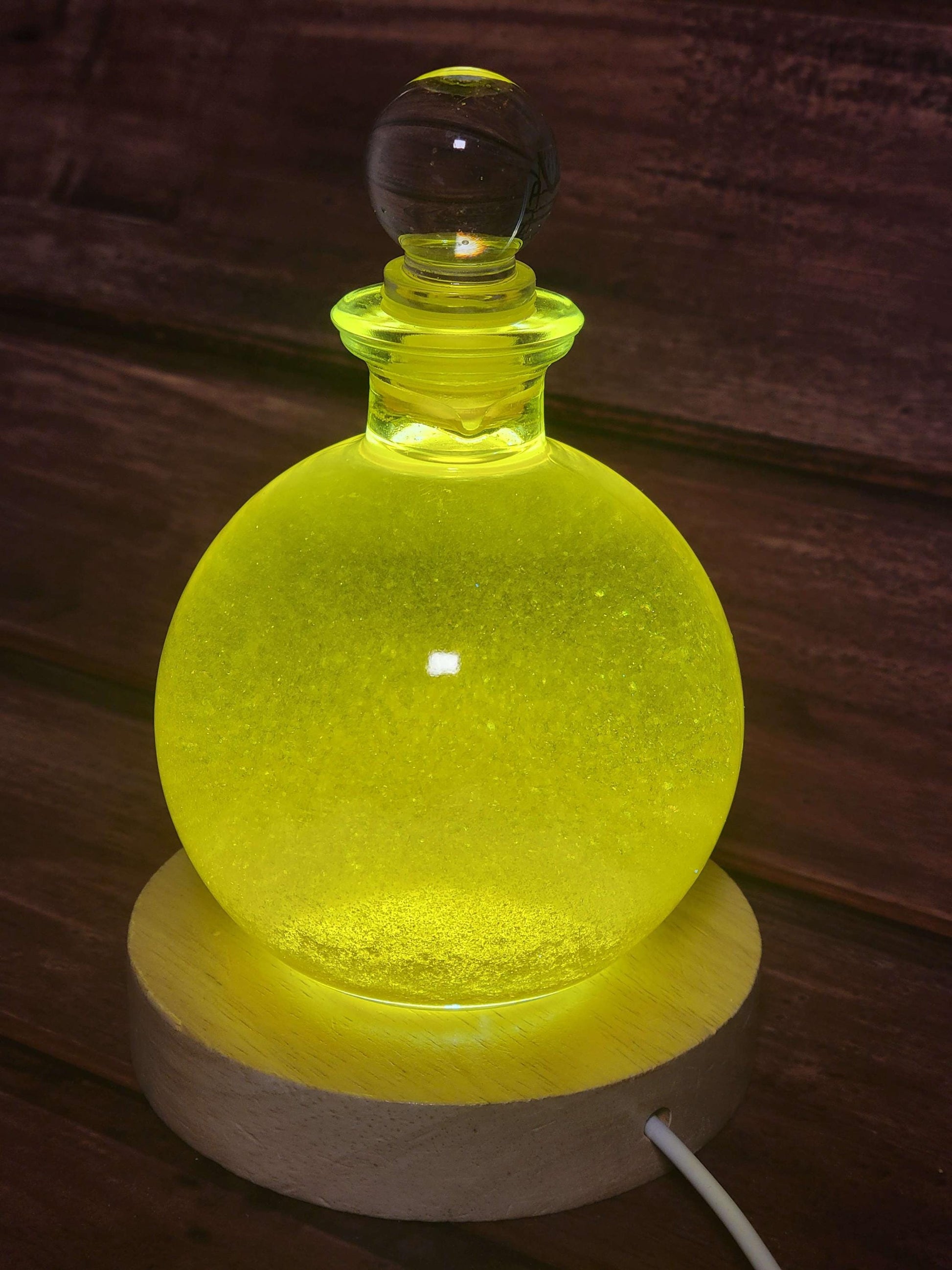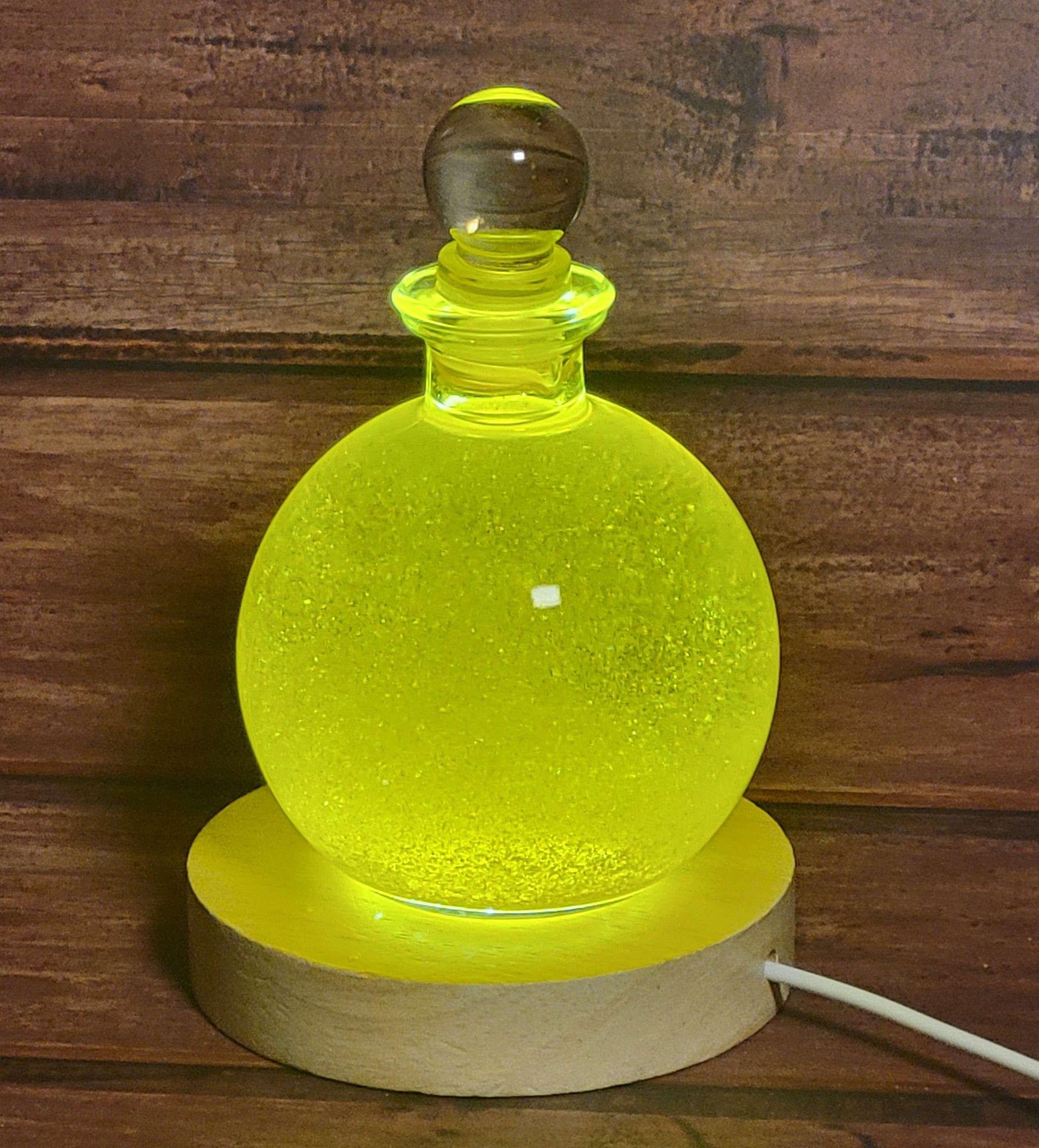 This "Golden Rain" snow globe contains a sea of beautiful golden flakes that resemble plates of gold. It makes a fascinating and unique chemistry demonstration, decorative display, or gift! When turned over all of the golden flakes rain down in a brilliant cascade that is sure to impress the beholder time and time again. It comes with a round wooden display with a built in LED for illuminating the globe, taking the visual display to the next level! The LED display plugs into any USB port or USB wall adapter.